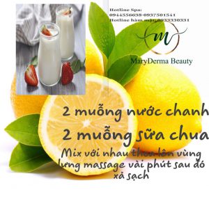 hỗn hợp 2 muỗng nước chanh ép + 2 muỗng sữa chua thoa lên vùng lưng massage vài phút và xả sạch